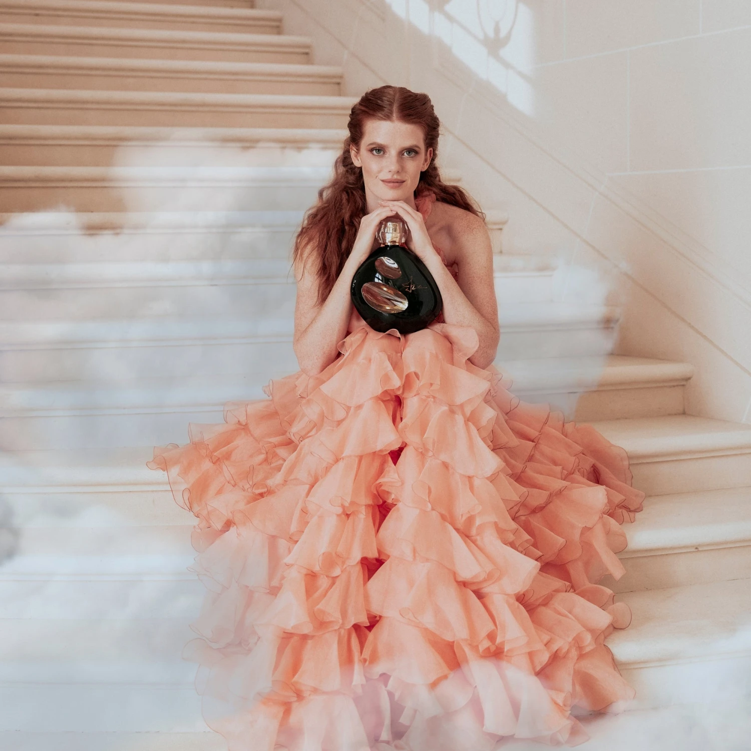 The sculptural bottle created by artist Bronislaw Krzysztof is adorned with a mysterious, glossy lacquer. Its deep black shade contrasts with the delicate golden film that reflects the luminous juice.